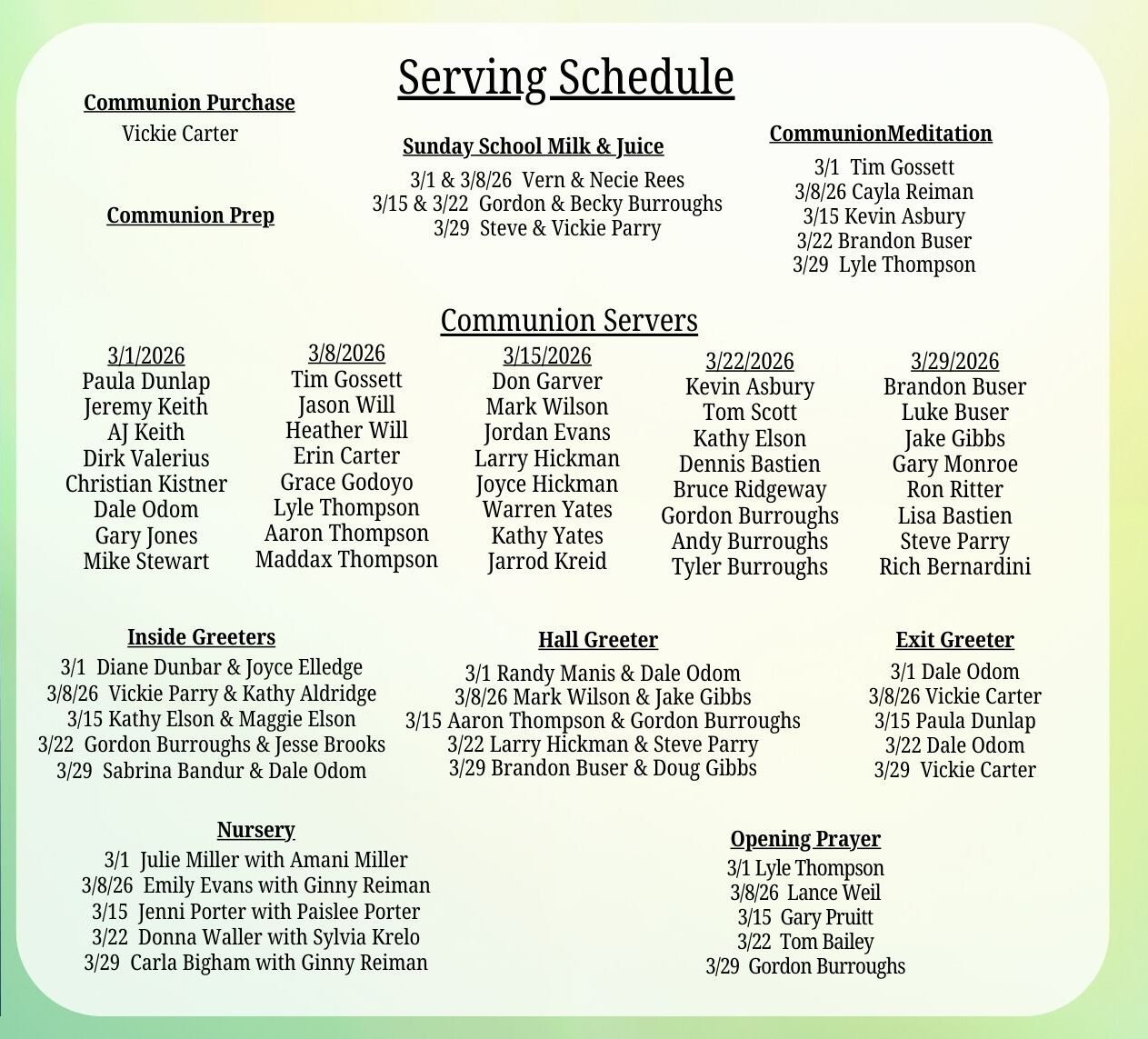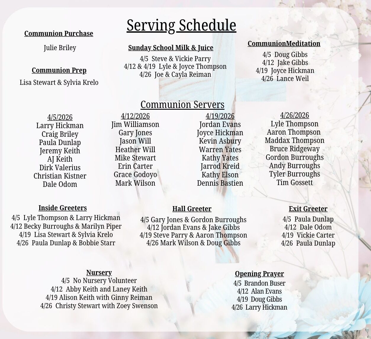 We have many needs at the church. Some are behind the scenes but are just as important as any job that is seen by everyone. God has given us all a special talent. Yes, even you! Let us help you find your talent and use it to serve God at ECC. Check out more ways to serve on the Opportunities Board in the Lobby.